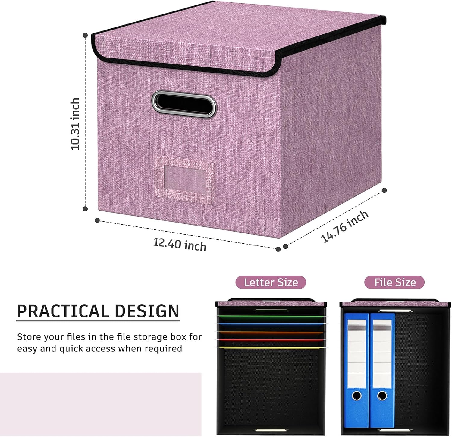 • Foldable Storage Box Design:File organizer has metal handles on both sides for easy movement and easy assembly. Clear label slots on the side for easy sorting and identification. Linen material is dustproof and provides durability for the file box, the bottom is reinforced to ensure the safety of the file storage, foldable design is more space-saving.